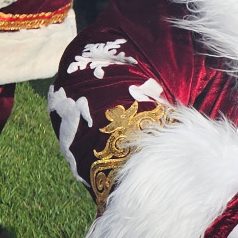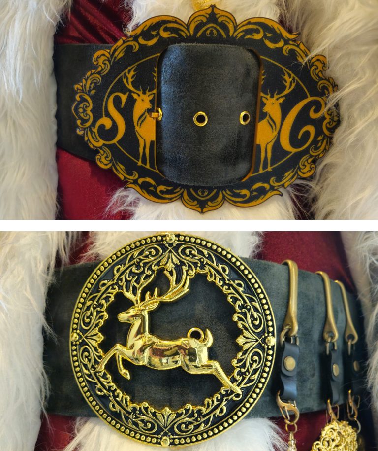 Die goldenen und weißen Applikationen lassen mein Kostüm besonders festlich erstrahlen. Sie funkeln im Lichterglanz und verleihen meinem Gewand den Zauber, den man sich vom echten Weihnachtsmann einfach wünscht.